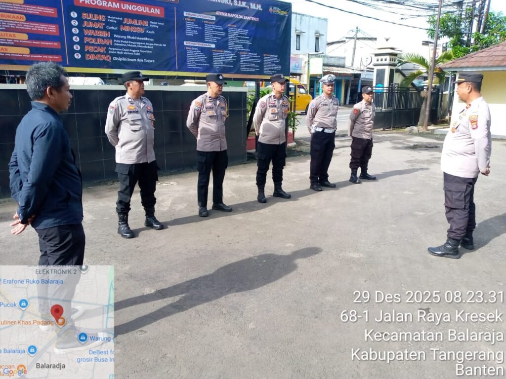 TANGERANG | KometNews.id – Personil Polsek Balaraja Polresta Tangerang Melaksanakan Rutinitas Apel Pagi dan Sispam Mako yg di pimpin oleh Pawas Iptu Sodikin (Kapolsubsektor Tobat) di halaman Mapolsek Balaraja. Senin (29/12/2025).