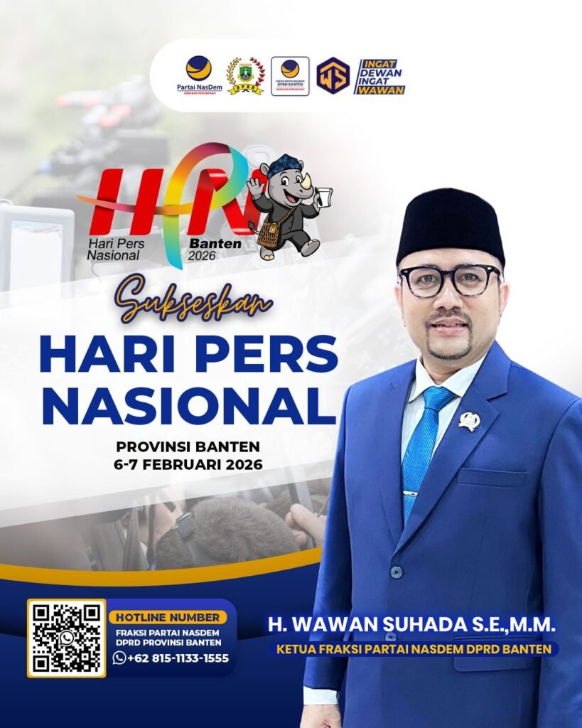 KometNews.id | BANTEN – Ketua Fraksi Partai NasDem DPRD Provinsi Banten, H. Wawan Suhada, S.E., M.M., menyampaikan ucapan selamat dan apresiasi tinggi kepada seluruh insan pers dalam momentum Hari Pers Nasional (HPN) 2026 yang dipusatkan di Provinsi Banten pada 6–9 Februari 2026.