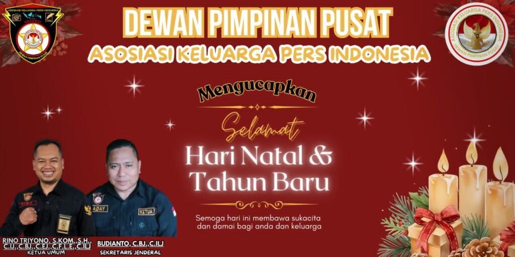 JAKARTA | KometNews.id – Ketua Umum Asosiasi Keluarga Pers Indonesia (AKPERSI), Rino Triyono, S.Kom., S.H., C.IJ., C.BJ., C.EJ., C.F.L.E., menyampaikan ucapan Selamat Hari Natal dan Tahun Baru kepada seluruh umat Kristiani yang merayakan, khususnya jajaran DPD AKPERSI Kalimantan Timur, Nusa Tenggara Timur (NTT), dan Sulawesi Utara. Rabu (24/12/2025).
