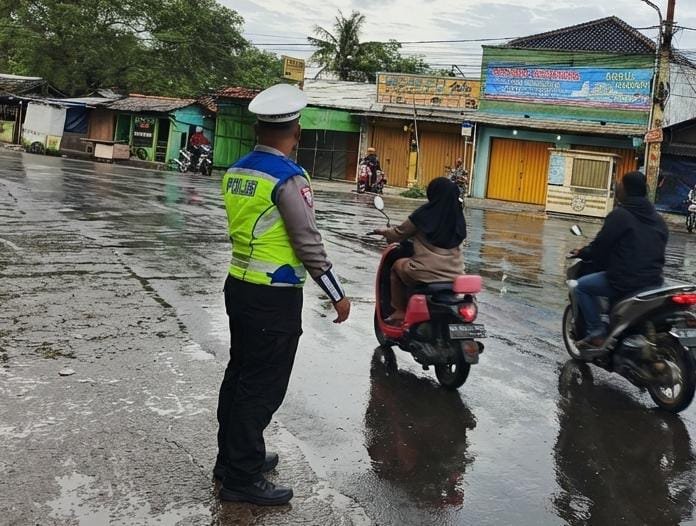 Polsek Kronjo Gelar Strong Point Gatur Lalin, Arus Pagi di Tugu Cangkir Terpantau Lancar