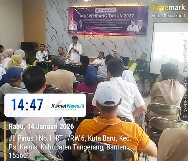 KUTA BARU|KOMETNEWS.ID – Pemerintah Kelurahan Kuta Baru, Kecamatan Pasar Kemis, Kabupaten Tangerang, menggelar Musyawarah Perencanaan Pembangunan (Musrenbang) sebagai bagian dari penyusunan rencana pembangunan tahun 2027. Kegiatan yang berlangsung di aula…