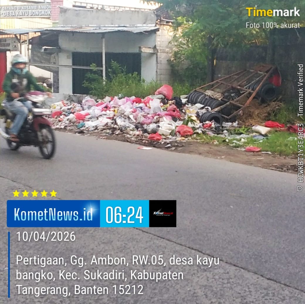 Tidak hanya di satu titik, kondisi serupa juga ditemukan di wilayah Pertigaan Gang Ambon, RW 05, Desa Kayu Bongkok, Kecamatan Sepatan sekitar pukul 06.24 WIB. Tumpukan sampah berada tepat di sisi jalan, berdekatan dengan permukiman warga dan akses lalu lintas.