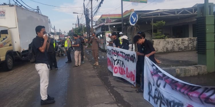 KOMETNEWS.ID, KABUPATEN TANGERANG – Puluhan mahasiswa dari Perhimpunan Mahasiswa Tangerang Utara bersama sejumlah aktivis menggelar aksi unjuk rasa di depan Kantor Kecamatan Kosambi, Jumat petang (10/4/2026). Mereka menuntut kepastian hukum atas maraknya truk tambang yang masih beroperasi di luar jam yang ditentukan.